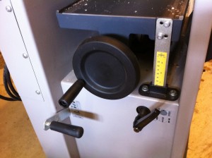 The depth of cut adjustment lever on the infeed side has just the right amount of friction to avoid accidental adjustment and make it easy enough to make smooth adjustments. Furthermore, it’s accessible and convenient enough that I’m quickly adopting a new habit of actually using the depth adjustment to distinguish between rough and finish cuts, thus making better use of my time. I never adjusted this on my old 6″ jointer because its capacity was limited by a small motor and adjusting it was less convenient than making multiple passes.